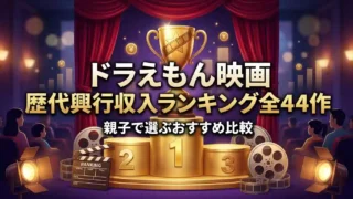 歴代エンタメ ドラえもん映画 歴代興行収入ランキング全44作【完全版】親子で選ぶおすすめ比較 ドラえもん映画の歴代興行収入ランキングを全44作一覧で公開。1位は2018年「のび太の宝島」53.7億円。泣ける・冒険・初めての1本など目的別おすすめも紹介。親子で観る作品選びに迷ったらこの記事だけでOKです。 歴代エンタメ